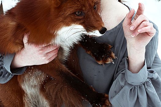 Iată povestea vizuală care trebuie imaginată de cel care priveşte fotografiile: În dumbravă fetele Polina şi Olga se întâlnesc cu vulpea roşie. Specia aceasta de vulpe este considerată dăunătoare populaţiei de mamifere şi păsări native. În latină se numeşte Vulpes vulpes. Este inclusă în lista „celor mai rele 100 de specii invazive din lume”. Însă vulpea din fotografii este instruită să stea în braţele fetelor roşcate. Sau să se apropie de buzele unei fete cu cozi împletite. Vulpea se numeşte Alice.