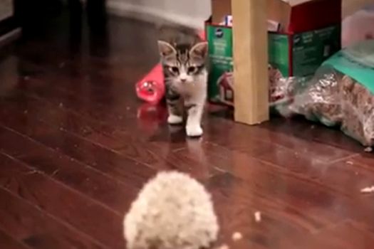 La un moment dat, pisoiul se apropie decis de cutia ariciului şi încearcă să îl atingă pe acesta, însă îşi retrage imediat membrele în momentul în care realizează că ţepii ariciului sunt de fapt o mică ameninţare.