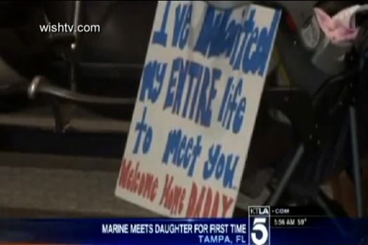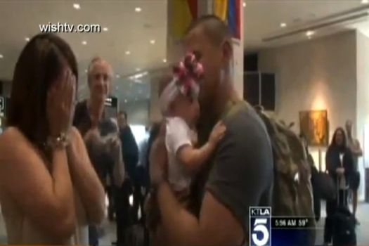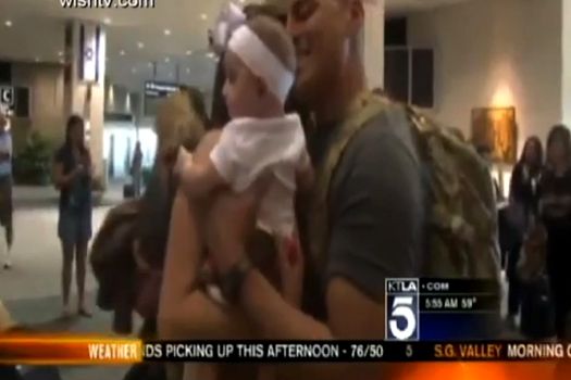 Întors din Afganistan, un soldat din Marina americană şi-a ţinut în braţe pentru prima oară fetiţa în vârstă de patru luni, bărbatul declarându-se „fără cuvinte” din cauza emoţiilor.
