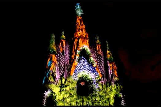 În cadrul festivalului Merce desfăşurat pe parcursul a patru zile, catedrala proiectată de arhitectul Antoni Gaudi a fost îmbrăcată în lumini de o companie canadiană în spectacolul „Odă vieţii”.