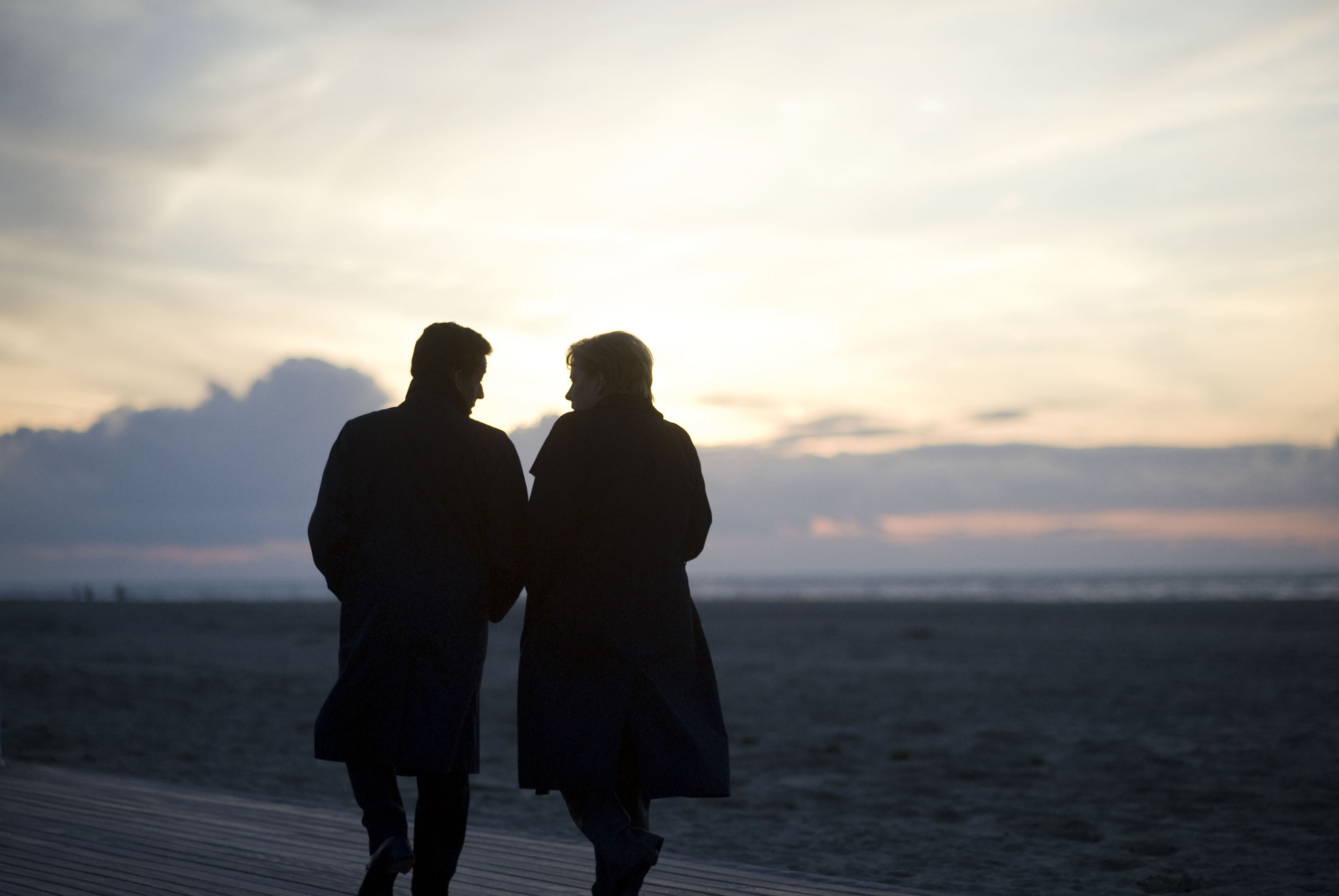 Nicolas Sarkozy şi cancelarul german Angela Merkel, în timpul unei plimbări, în perioada summitului germano-francez-rus, din Deauville, Franţa, pe 19 octombrie 2010