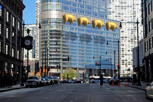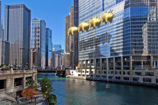 Compania de arhitectură a realizat un concept în care o serie de baloane în formă de porci uriaşi aurii ar urma să plutească pe faţada Trump Tower din Chicago, mascând astfel numele magnatului american.