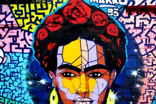 În Paris pictoriţa mexicană Frida Kahlo e desenată de grafferi în mozaic şi culori fosforescente, cu un nimb de femeie-martir. Aura e albastră, culoarea cerului de noapte. Frida a devenit iconică. E canonizată în graffiti.