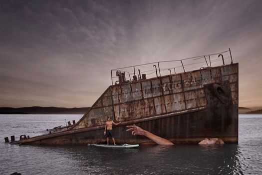 În Hawaii, pe o epavă din largul mării, artiştii au pictat o femeie. Pare o sirenă în transă. Sau în prag de moarte.