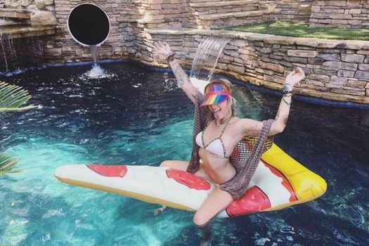 Fiica regelui pop Michael Jackson s-a relaxat pe canapea, îmbrăcată într-un costum de baie alb, în timp ce pe fundal răsuna ”Hips Don’t Lie”, interpretată de Shakira.