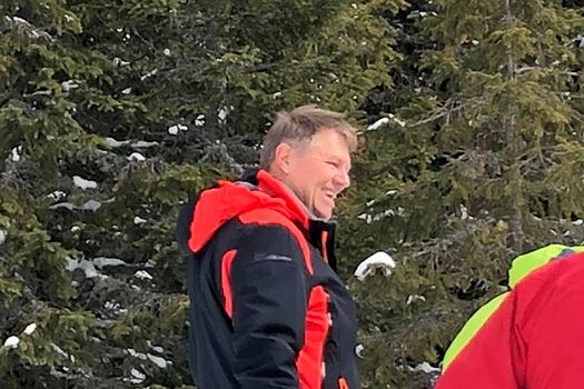 Iohannis a fost îmbrăcat într-un costum de schi negru cu portocaliu, fiind surprins într-o fotografie în timp ce râdea. Imaginea a fost postată ulterior pe Facebook.