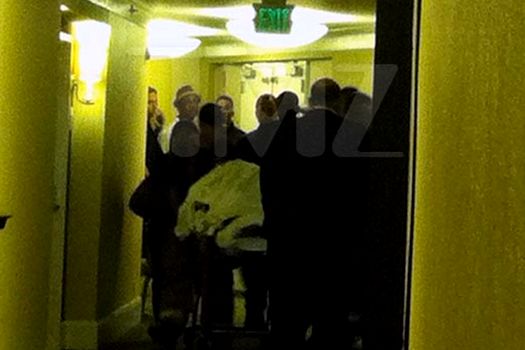 Trupul neînsufleţit al cântăreţei a fost socs din camera de hotel pe o targă, fiind dus la morgă pentru autopsie.