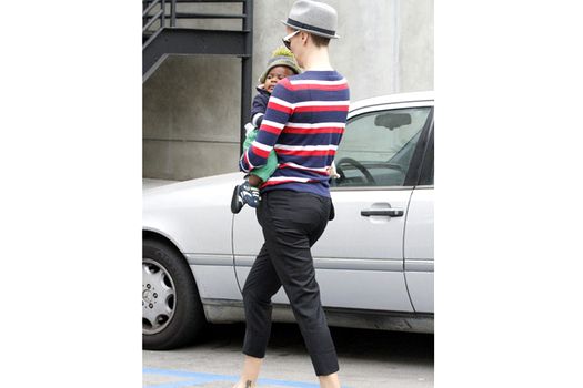 Actriţa de 36 de ani a fost fotografiată în timp ce îl ţinea în braţe pe fiul său adoptat, Jackson, relatează dailymail.co.uk.