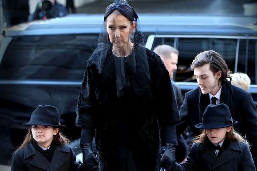 Céline Dion, foarte îndurerată, dar în acelaşi timp foarte elegantă, purtând o rochie şi un voal negre, a fost însoţită la funerarii de cei trei copii ai săi – René Charles, în vârstă de 14 ani, şi gemenii Eddy şi Nelson, în vârstă de cinci ani. Alături de cântăreaţă a fost şi mama acesteia, Therese.