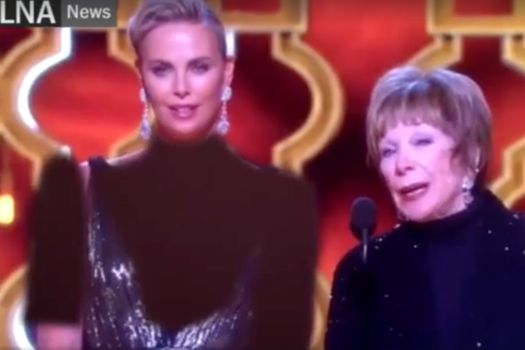 Când Ansari a acceptat statueta, în cadru apărea şi Charlize, dar de data aceasta producătorii au decis să blureze complet actriţa, lăsând la vedere doar chipul acesteia.