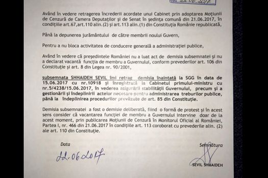Citeşte şi: 14 miniştri ai Cabinetului Grindeanu, demis ieri în Parlament, au solicitat retragerea demisiilor. Ministrul Justiţiei Tudorel Toader s-a alăturat demersului/ Acest „act” nu este prevăzut în legislaţie
