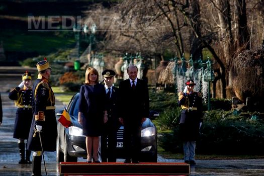 Ceremonia de predare-primire a fost una protocolară, la care au participat atât soţiile celor doi preşedinţi, precum şi consilierii lui Traian Băsescu şi cei care vor face parte din echipa lui Klaus Iohannis.