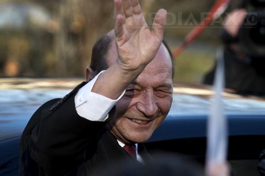 Traian Băsescu le-a făcut cu mâna şi le-a spus ”la revedere” celor câteva sute de persoane care, în afara Palatului, se aşezaseră de o parte şi de alta a străzii, unii aplaudând, alţii huiduind.