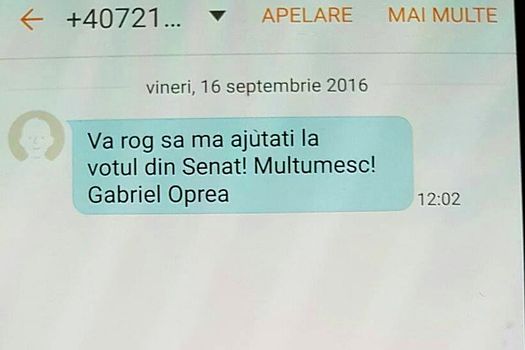 Ei îl acuză pe fostul vicepremier că anterior susţinerii discursului de apărare, Gabriel Oprea a încercat să intervină pe lângă colegi, prin expedierea de sms-uri tuturor senatorilor, inclusiv celor liberali, la data de 16 septembrie a.c., în care a rugat sa fie ajutat la votul decisiv.