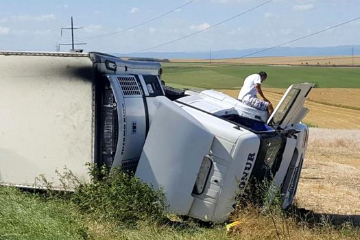 El a spus că şoferul TIR-ului a intrat cu viteză într-o curbă, a intrat în balans şi s-a răsturnat.