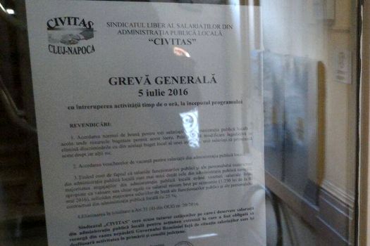 „La greva generală de o oră, declanşată, marţi, de FNSA, la începutul programului de lucru, participă peste 1.000 de angajaţi din Primăria Cluj-Napoca şi circa 30.000 de funcţionari publici şi personal contractual la nivel naţional, din primării, consilii judeţene şi instituţii subordonate. În acest interval, participanţii la grevă au încetat activitatea iar publicul nu are acces în instituţiile publice. Avem o listă de revendicări şi aşteptăm să fim chemaţi la negocieri de Guvern, iar în cazul în care aceste revendicări nu sunt satisfăcute, vom declanşa în 12 iulie o grevă generală de o zi, iar în 19 iulie o grevă pe termen nelimitat”, a spus Suciu.