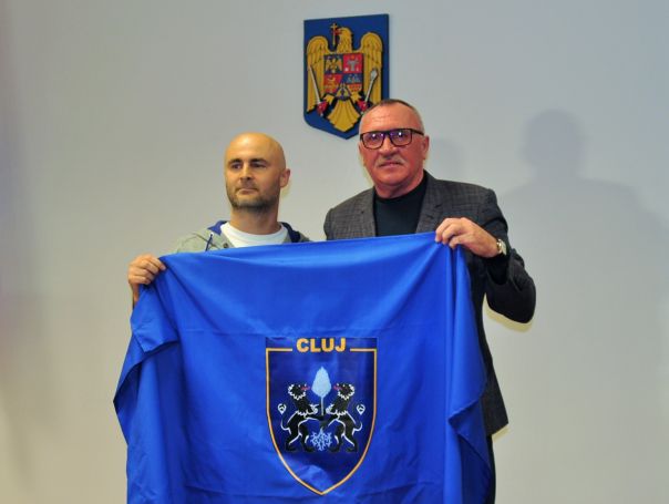 Preşedintele Consiliului Judeţean Cluj, Marius Mînzat, a declarat, la rândul său în aceeaşi conferinţă de presă, că i-a înmânat steagul judeţului Cluj pentru a încuraja sportul şi performanţa.