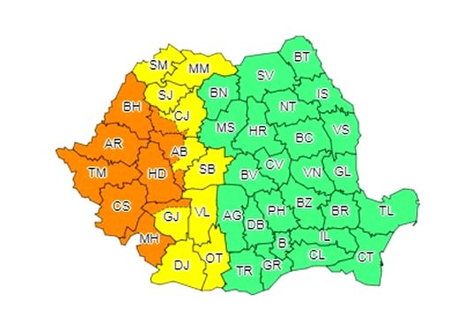 În judeţele Mehedinţi, Caraş-Severin, Timiş, Arad, Bihor, Hunedoara, precum şi în zona de munte a judeţelor Cluj, Alba şi Gorj, îndeosebi pe parcursul nopţii de sâmbătă spre duminică (12/13 august) în intervale scurte de timp se vor înregistra cantităţi de apă de peste 50…60 l/mp şi izolat 80…90 l/mp.