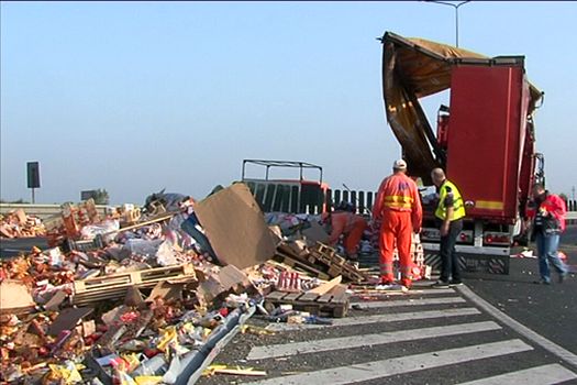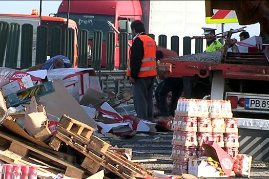 În urma accidentului, autostrada a fost blocată timp de aproximativ 30 de minute, până când camionul a fost ridicat de un utilaj, iar după reluarea traficului una din benzile de circulaţie a rămas blocată încă două ore, pentru a fi strânse de pe şosea produsele împrăştiate.