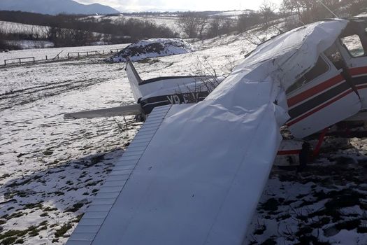 Este vorba despre un aparat de zbor privat, de mici dimensiuni, cu dublă comandă, cei doi piloţi, de 62 respectiv 34 de ani, reuşind să scape nevătămaţi.