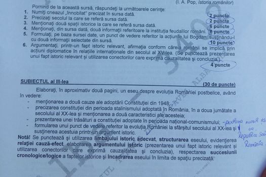 BACALAUREAT 2016. SUBIECTE SI BAREM ISTORIE.