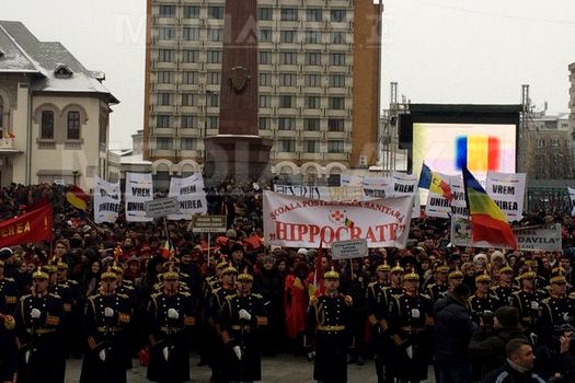 La începutul manifestărilor, preşedintele Senatului, Crin Antonescu, şi primarul Iaşiului, Gheorghe Nichita, au fost huiduiţi, participanţii scandând mesaje şi împotriva premierului şi a şefului statului, care nu au participat la evenimente.