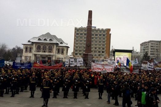 În Piaţa Unirii din Iaşi s-au aflat şi manifestanţi anti-Roşia Montană, care, la intonarea imnului de stat, au strigat „Uniţi salvăm toată România”.