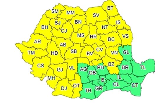 Meteorologii avertizează că vineri vor fi averse torenţiale, vijelii, descărcări electrice şi izolat grindină la început în Banat, Crişana şi Maramureş, apoi în Transilvania, Oltenia, cea mai mare parte a Moldovei şi în nordul Munteniei.