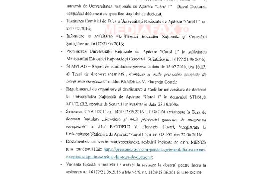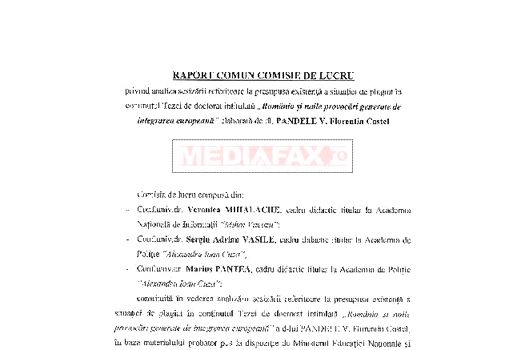 Procentul de similitudine identificat este de 15% în cazul tezei de doctorat a lui Pandele, „ceea ce ar permite o susţinere publică fără probleme, dacă s-ar permite o evaluare retroactivă”, se mai arată în document.