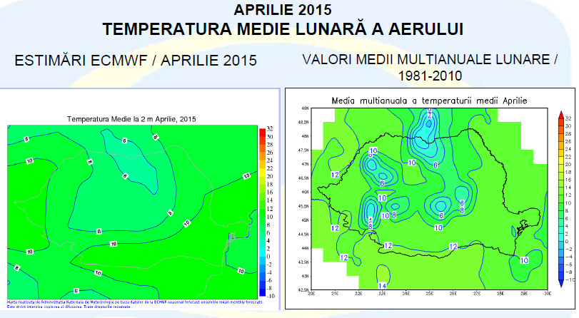 Temperatura aerului va fi apropiată de normalul climatologic în sud-est şi local în sudul şi vestul ţării, iar în celelalte regiuni va avea valori sub mediile multianuale ale perioadei.