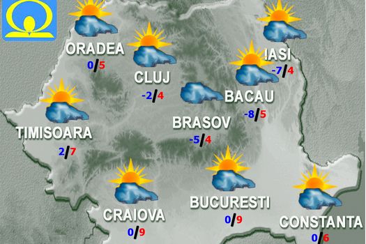 Ziua, cerul va fi temporar noros şi doar izolat, cu precădere în zona Carpaţilor Orientali, va ninge slab. În cursul nopţii nebulozitatea se va accentua treptat în toată ţara şi pe arii relativ extinse vor fi precipitaţii slabe în vest, în centru, în nord, precum şi în zonele de deal şi de munte din rest. Acestea vor fi sub formă de ninsoare în zona montană, în Maramureş, Transilvania şi Moldova, mixte în Crişana, nordul Olteniei şi al Munteniei şi predominant sub formă de ploaie în Banat. Vor fi condiţii de polei sau gheţuş. Vântul va sufla slab şi moderat, cu unele intensificări în a doua parte a intervalului în zona Munţilor Banatului şi în Carpaţii Meridionali. Temperaturile maxime se vor încadra între 1 şi 11 grade, iar cele minime, în general, între -8 şi 2 grade. Izolat va fi ceaţă.