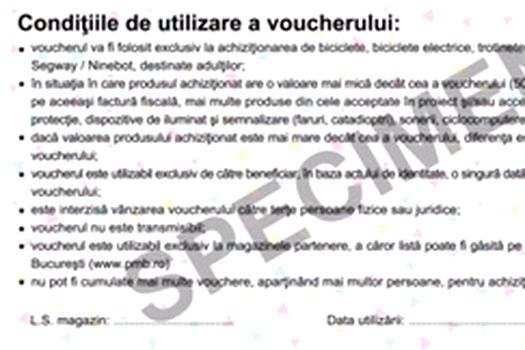 Pe verso sunt inscripţionate „Condiţiile de utilizare” ale voucherului, iar în partea de jos a acestuia vor fi notate data şi magazinul la care a fost utilizat tichetul.