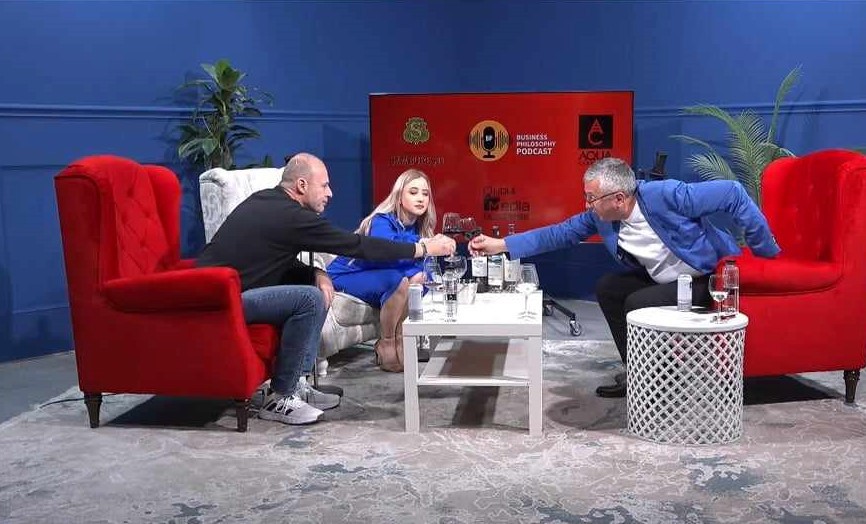 El a făcut o degustare de vin în orb pe înţelesul tuturor, alături de someliera din R. Moldova, Olivia Cucoş, prezentatoare TV şi moderatorul podcastului, Romeo Chiriac.
