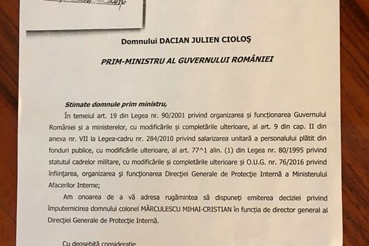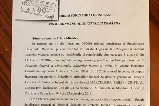 Pe 24 noiembrie 2016, ministrul de Interne de la acea vreme, Dragoş Tudorache, i-a trimis fostului premier Dacian Cioloş o adresă prin care îi cerea emiterea unei decizii pentru împuternicirea lui Mihai-Cristian Mărculescu în funcţia de director general al Direcţiei de Protecţie Internă (DGPI). În aceeaşi zi, fostul premier a avizat împuternicirea.