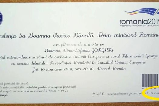 „Uite prostie! Primesc azi (miercuri – n.r.) o invitaţie pentru concertul care va avea loc mâine la Ateneul Român, pentru a marca debutul Preşedinţiei României la Consiliul UE. Mi se cere să confirm prezenţa până la data de „8 ianuarie 2018”. Oare „profesioniştii” din Cabinetul Dăncilă nu cunosc nici măcar anul în care preluăm preşedinţia rotativă!? Un lucru este cert: după domniile lor, am ratat să confirm prezenţa la concert cu un an. Mai mult, pentru un eveniment de o asemenea anvergură, mi se pare lipsă de respect să primesc invitaţia cu doar o zi înainte”, a scris Alina Gorghiu, miercuri pe Facebook.