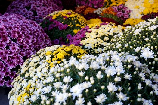 Rând pe rând, soţii Opriţa descarcă florile şi le aşază în linie. Fiecare crizantemă este o cupolă viu colorată care atrage instant privirile celor din jur.
