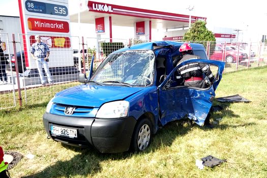 ”Femeia din autoturism are 53 ani. A suferit traumatism cranio-cerebral grav, traumatism abdominal şi toracic. A fost transportată la spital”, a spus Duţă.
