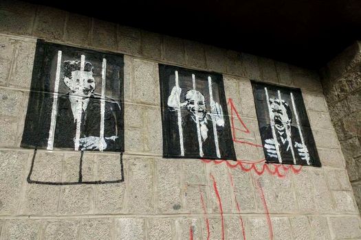 Pe pereţii monumentului apar imagini pictate cu mai mulţi politicieni în spatele gratiilor – Liviu Dragnea, Victor Ponta, Adrian Năstase, Ion Iliescu, Nicolae Ceaşescu, Traian Băsescu, Victor Ciorbea, C. V. Tudor, Elena Udrea.