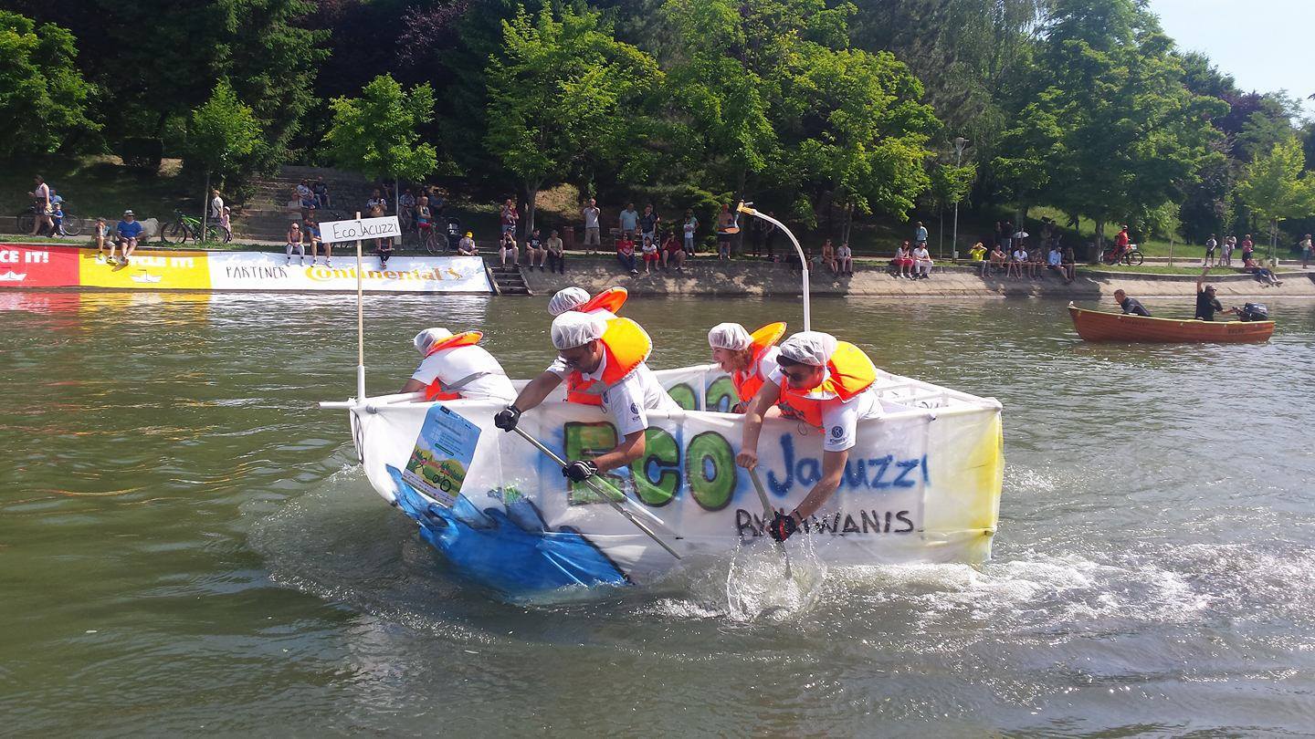 “Este mult mai bine decât anul trecut, temele sunt mult mai diverse, modalitatea în care au fost construite ambarcaţiunile este mult mai faină, unele sunt chiar foarte bine făcute. În mare parte, fricoşii folosesc pet-uri şi bidoane, pentru că plutesc cu siguranţă, dar avem şi o ambarcaţiune care este realizată 100% din carton. Este un nou început, şi sperăm ca de la anul să facem o categorie specială doar pentru ambarcaţiuni din carton. Scopul de bază al acţiunii este să ne obişnuim cu un mod de viaţă prietenos cu mediul, adică toate deşeurile pe care noi le aruncăm de obicei, uite că pot să primească o nouă viaţă”, a declarat, corespondentului MEDIAFAX, preşedintele Asociaţiei “EcoStuff”, Radu Rusu.