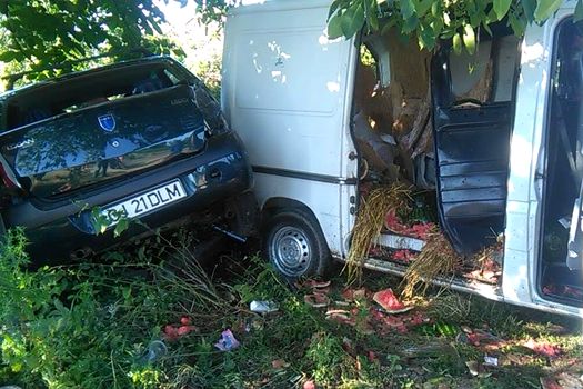 În urma impactului, microbuzul a fost proiectat într-un autoturism parcat în faţa unei case.