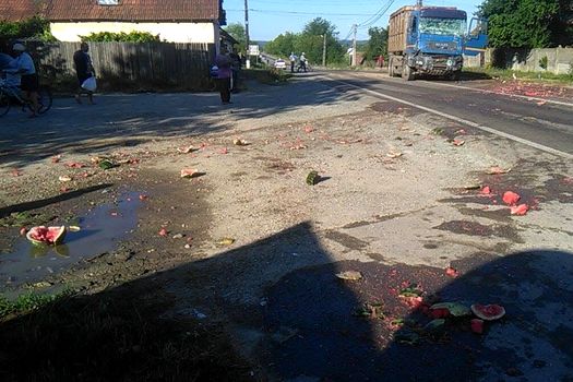 Purtătorul de cuvânt al IPJ Gorj, Andrei Lazăr, a declarat, corespondentului MEDIAFAX, că un TIR care se deplasa, joi, pe DN 67, în localitatea Câlnic, a intrat în coliziune, la intersecţia cu un drum comunal, cu un microbuz încărcat cu pepeni, care nu a acordat prioritate de trecere.