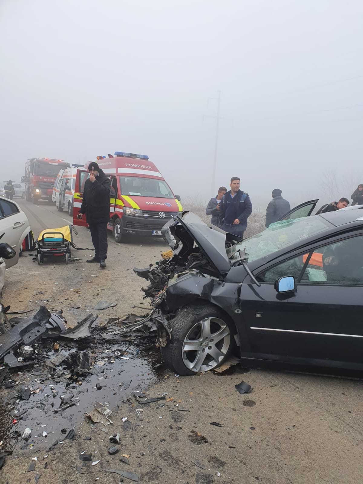 „Din primele date se pare că unul dintre autoturisme s-ar fi angajat într-o depăşire neregulamentară, în condiţii de vizibilitate redusă”, spun reprezentanţii Poliţiei Dolj.