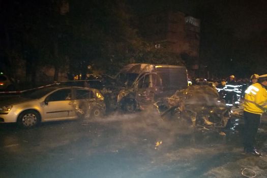 În total, şase autovehicule au fost avariate, iar patru dintre ele au fost cuprinse de incendiu.