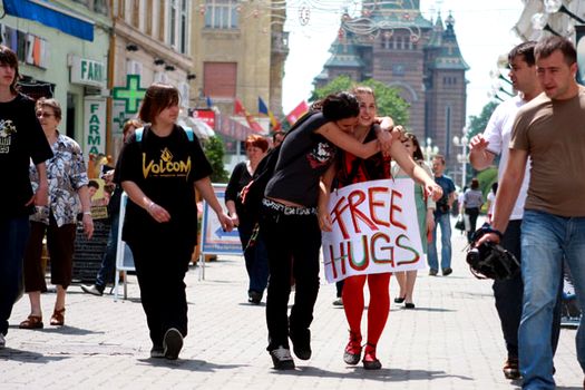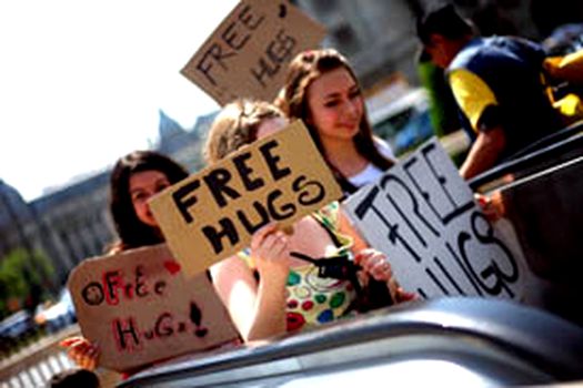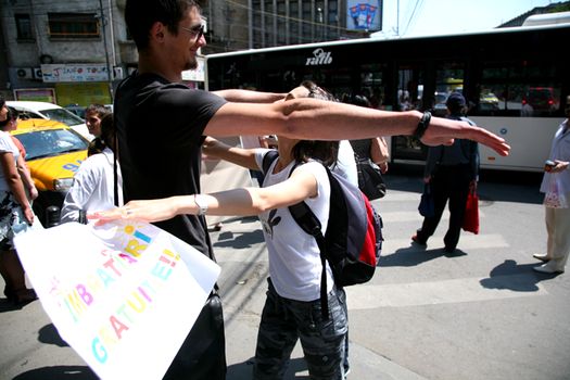 O parte din voluntari, însoţiţi de alţi tineri simpatizanţi ai proiectului, au mers apoi pe aleile din parc şi pe Bulevardul Regina Elisabeta, până în Piaţa Universităţii, oferind trecătorilor îmbrăţişări pentru a-i binedispune. Tinerii au afişat bannere cu inscripţiile "Free Hugs" sau "Îmbrăţişări gratuite", organizând, la sfârşitul traseului, o îmbrăţişare de grup pentru a celebra succesul campaniei.