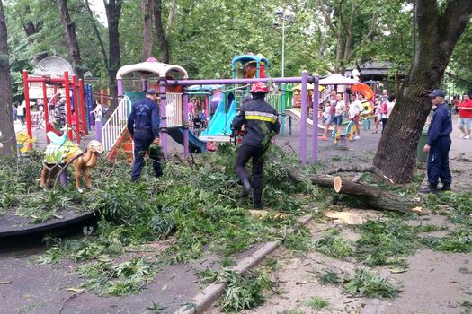 O creangă s-a desprins dintr-un copac şi a lovit şase persoane, două femei şi patru copii cu vârste cuprinse între trei şi şase ani.