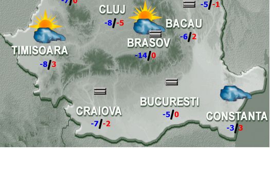 Cerul va fi variabil la deal şi la munte, iar noaptea şi în vest, nord-vest şi nord, în timp ce în celelalte regiuni va avea înnorări şi va ninge slab, local în Moldova, Muntenia şi Dobrogea şi izolat în rest. Faţă de intervalul precedent, regimul termic va marca o scădere, astfel încât temperaturile maxime se vor încadra între -5 şi 2 grade, iar cele minime între -12 şi -3 grade, mai scăzute în depresiunile Carpatilor Orientali. Va fi ceaţă, asociată cu depunere de chiciură, în interiorul arcului carpatic şi doar izolat în sud-vest şi sud. Vântul va sufla slab şi moderat, cu unele intensificări în regiunile estice, sud-estice şi zona montană înaltă.
