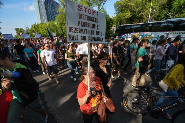 După aproximativ o oră şi jumătate de protest la intrarea în Parcul Herăstrău, manifestanţii s-au pus în mişcare, scandând, printre altele, „Toate partidele au tăiat pădurile” şi „Natura suntem noi”.