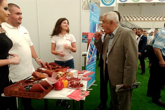 Apoi, Petre Daea şi-a continuat vizita pe la standurile expoziţiei, degustând mezeluri de la producători locali, brânză sau pâine şi i-a felicitat pentru munca depusă.