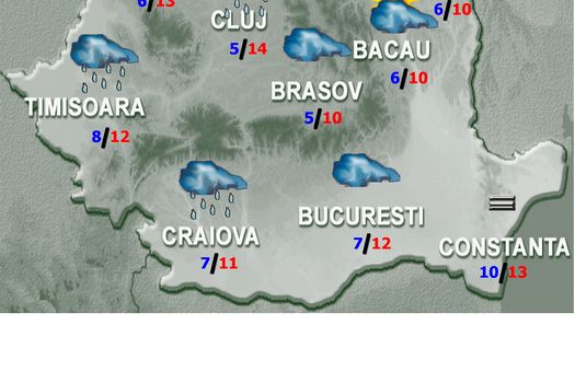 Vremea se va menţine predominant închisă. Temporar, va ploua slab, în sudul, centrul şi estul ţării şi local în rest, iar la munte, la altitudin mari, în special în jumătatea de vest a Carpaţilor Meridionali, vor mai fi precipitaţii sub formă de lapoviţă şi ninsoare. Vântul va sufla slab până la moderat. Temperaturile maxime vor fi cuprinse între 7 şi 14 grade, iar cele minime între 3 şi 10 grade. Noaptea, în zonele joase, cu precădere din sud, pe arii restrânse se va semnala ceaţă.