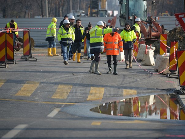 Ministerul Transporturilor arăta, într-un comunicat, că au apărut deformări în şosea din cauza lucrărilor la extinderea magistralei de metrou încă de vineri, constructorul luând o serie de măsuri.